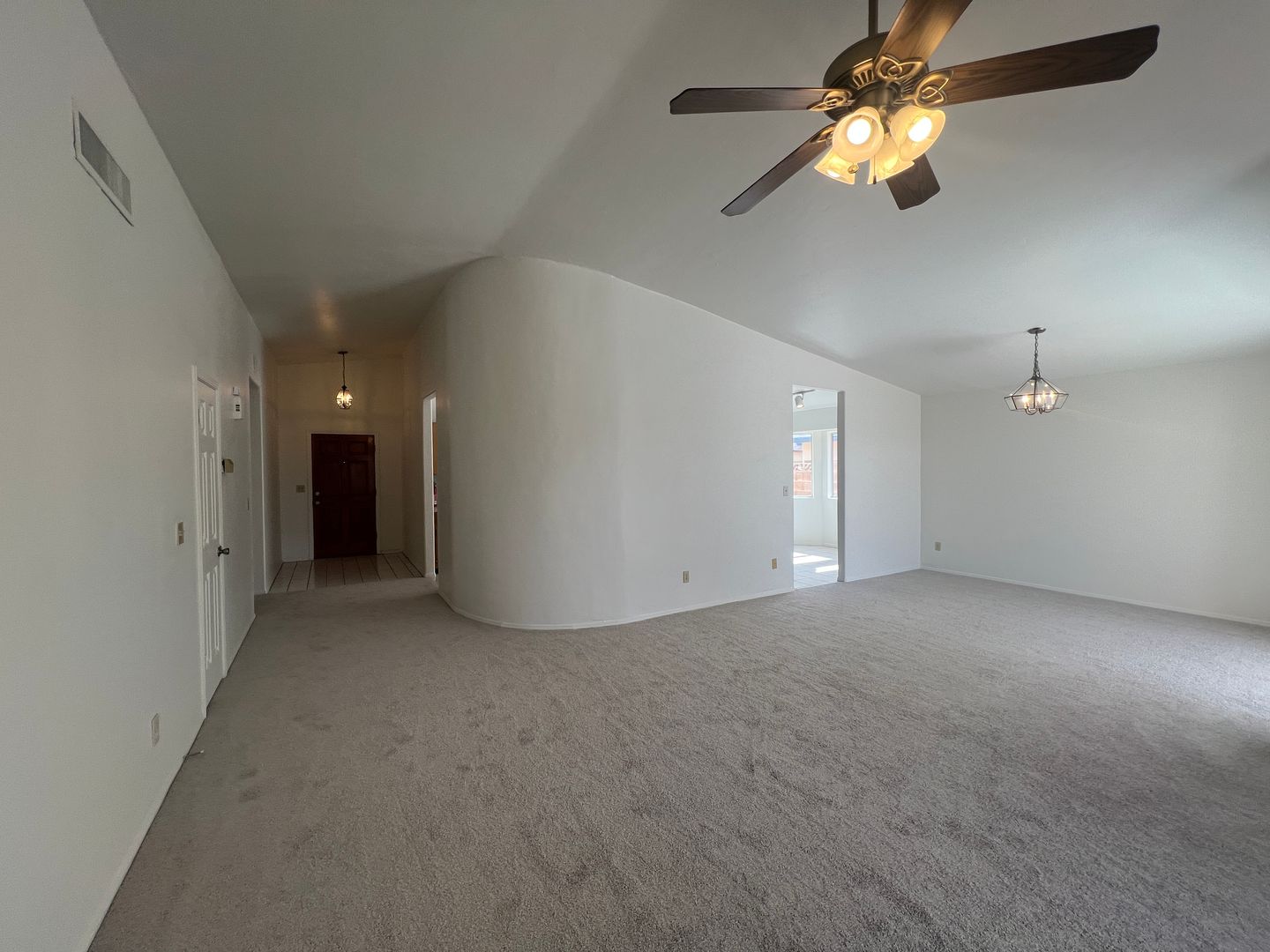 AVAILABLE FOR QUICK POSSESSION & SELF VIEWING! This attractive and comfortable 3 bedroom 2 bath home has an east side location that is convenient to everything. Amenities of this home include a large living room with vaulted ceiling & new carpet, a spacious kitchen with lots of cabinets & counter space and bay window breakfast nook, a split bedroom plan, and a nice size master bedroom with a master bath that has both a shower & a tub. In addition, this home has covered rear porch, a good size yard that backs up to an open desert strip, and a 2 car garage.
